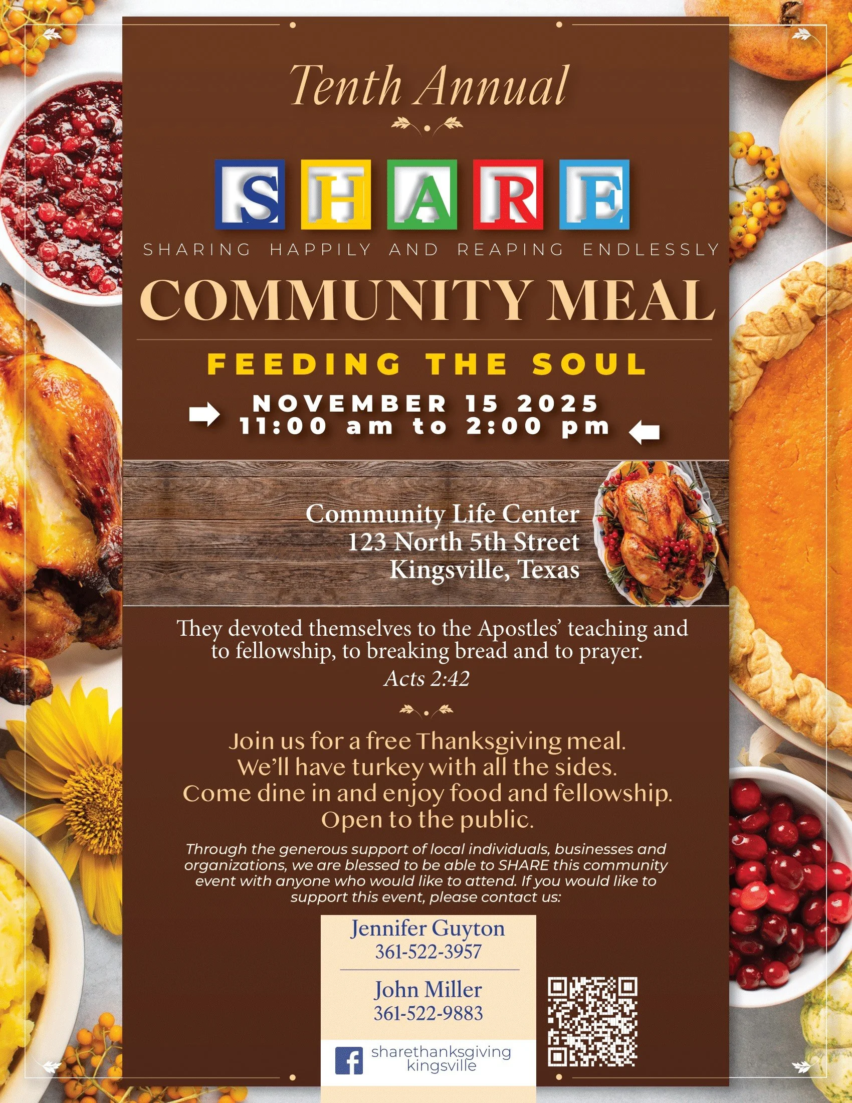 The SHARE committee will be hosting their 10th annual Thanksgiving celebration.