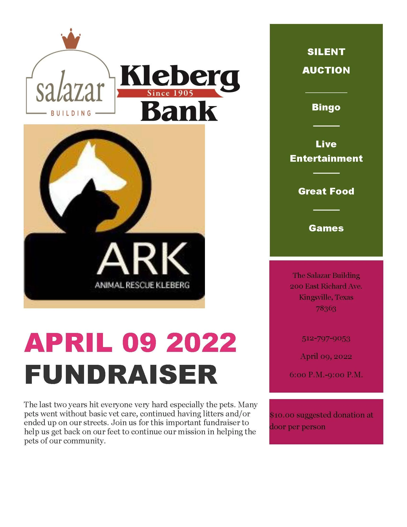 On April 9th from 6-9pm, Animal Rescue Kleberg will be hosting a silent auction fundraiser event at The Salazar Building that will include food, drinks, live entertainment, bingo and games.