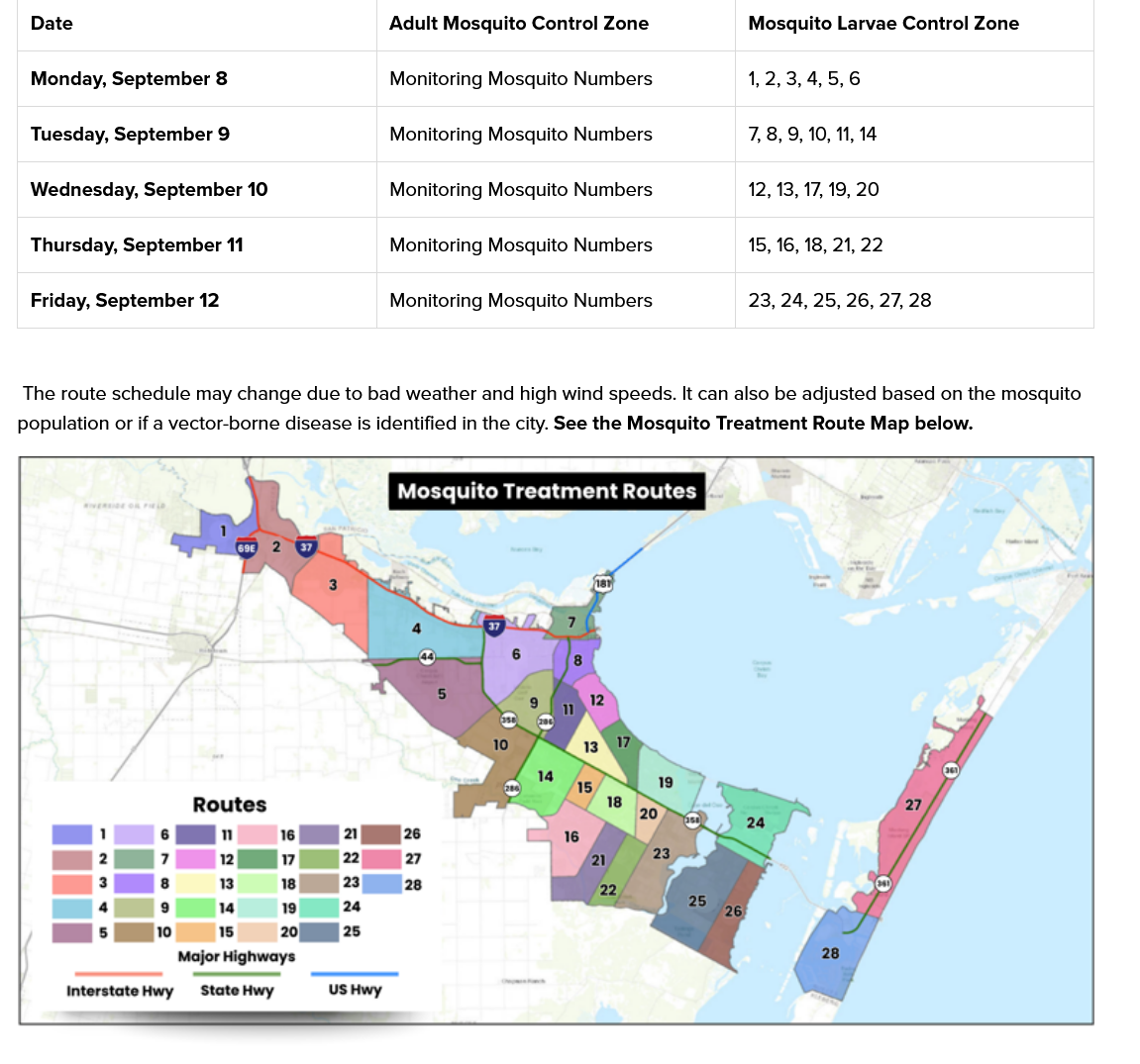 Vector Control is actively working to manage mosquito populations across the city.