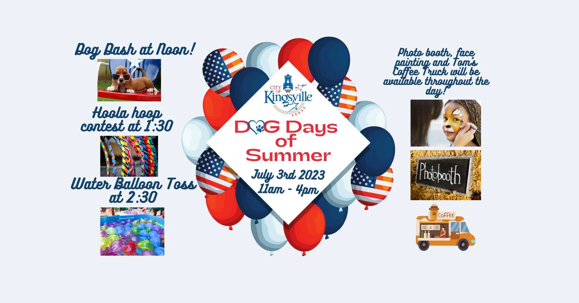 Other activities include a photo booth by ARK (Animal Rescue Kingsville), coffee by Tom’s Coffee Truck, face painting, and corn hole throughout the day!