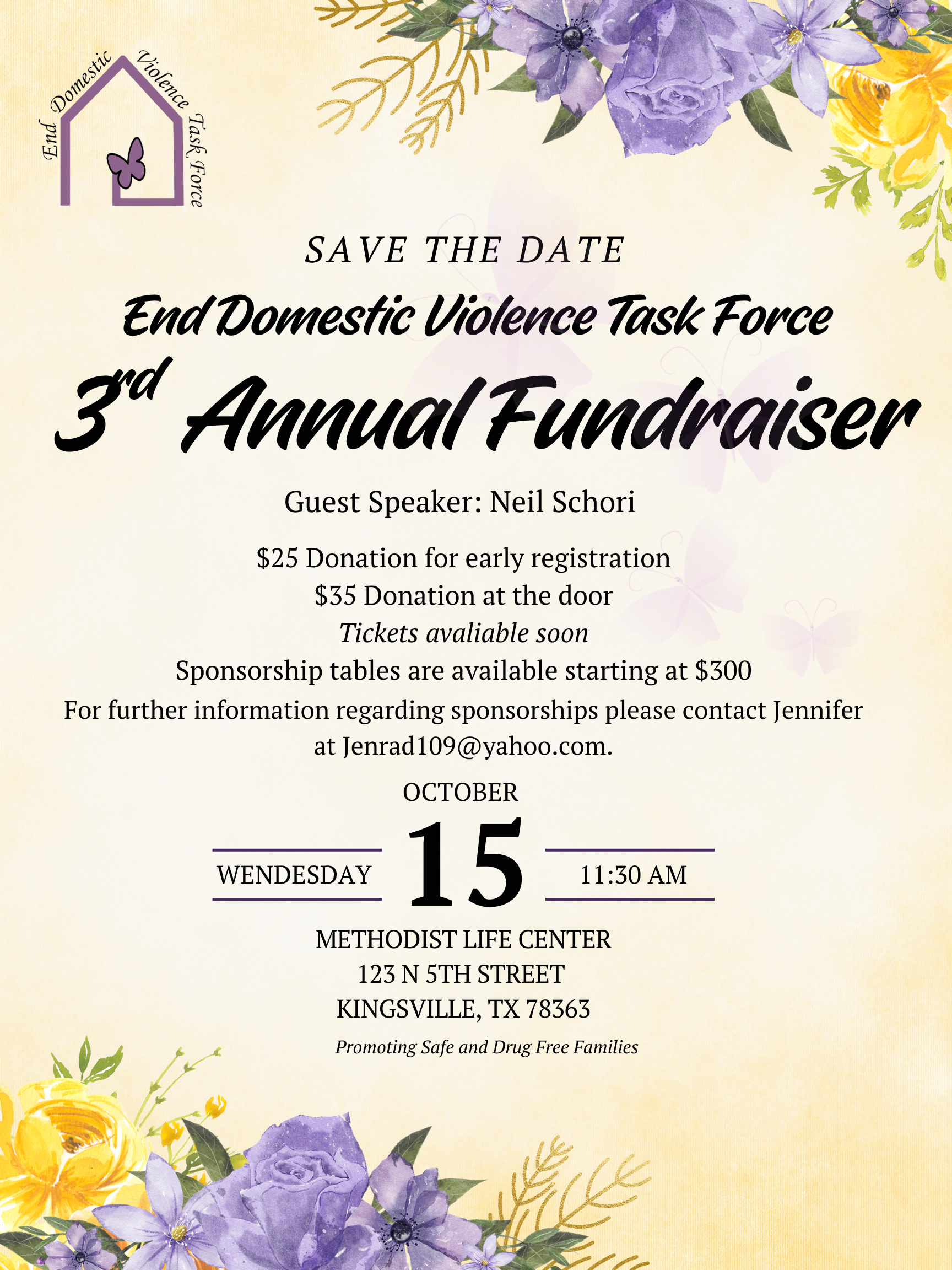 The End Domestic Violence Task Force, a ministry of First Baptist Church Kingsville, will hold their 3rd annual fundraiser.