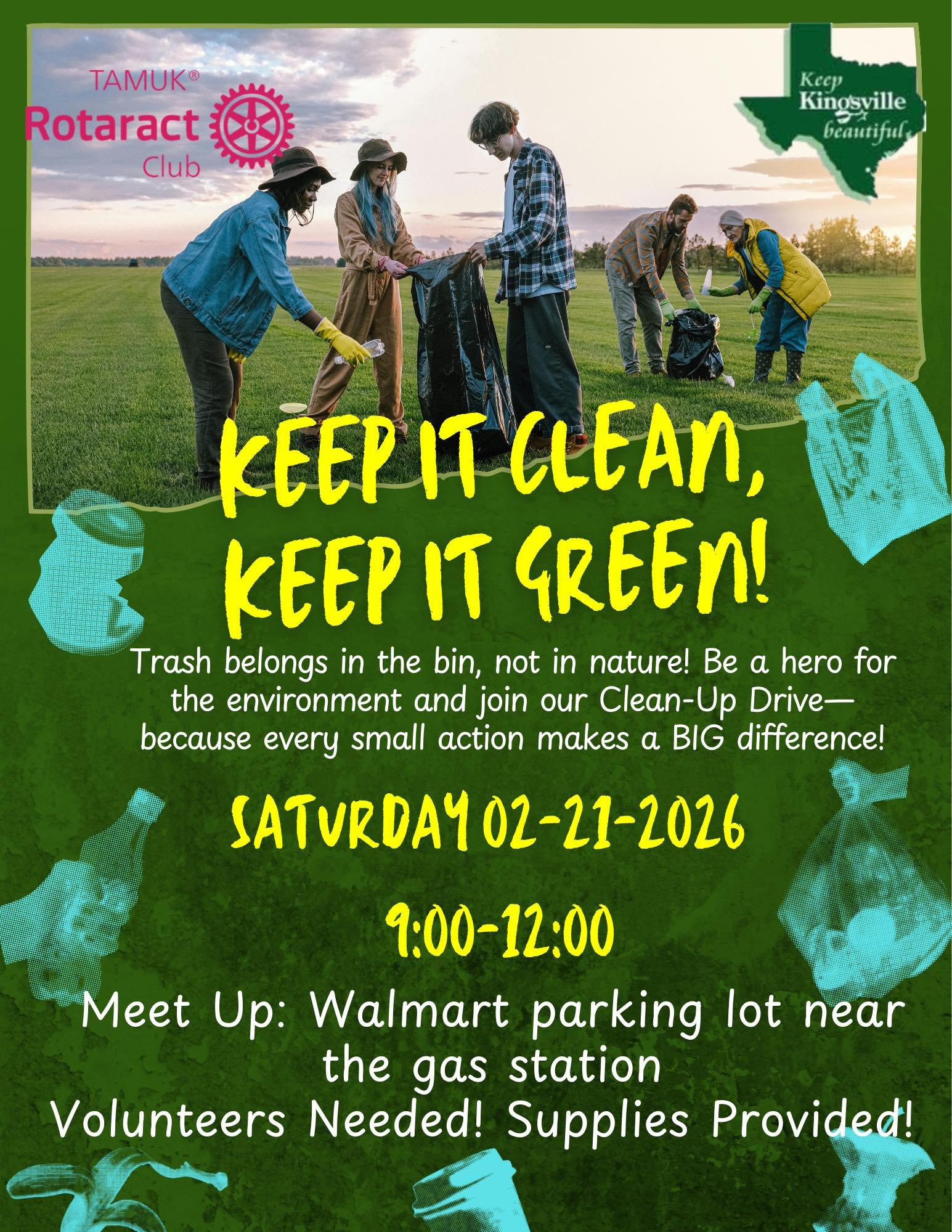 Join the TAMUK Rotaract Club Saturday, February 21. Volunteers needed. Supplies provided.