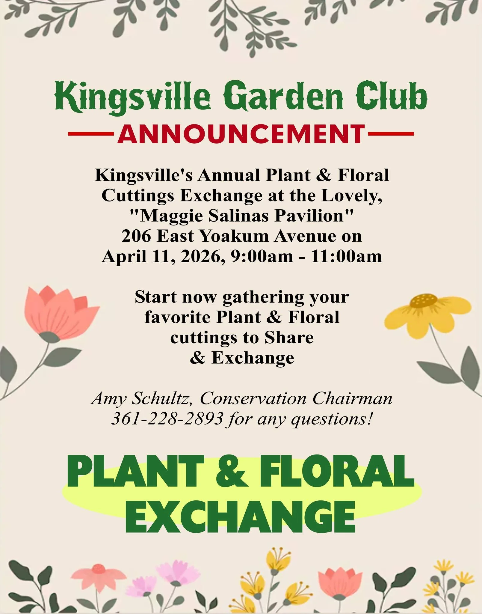 Kingsville Garden Club Plant & Floral Cuttings Exchange