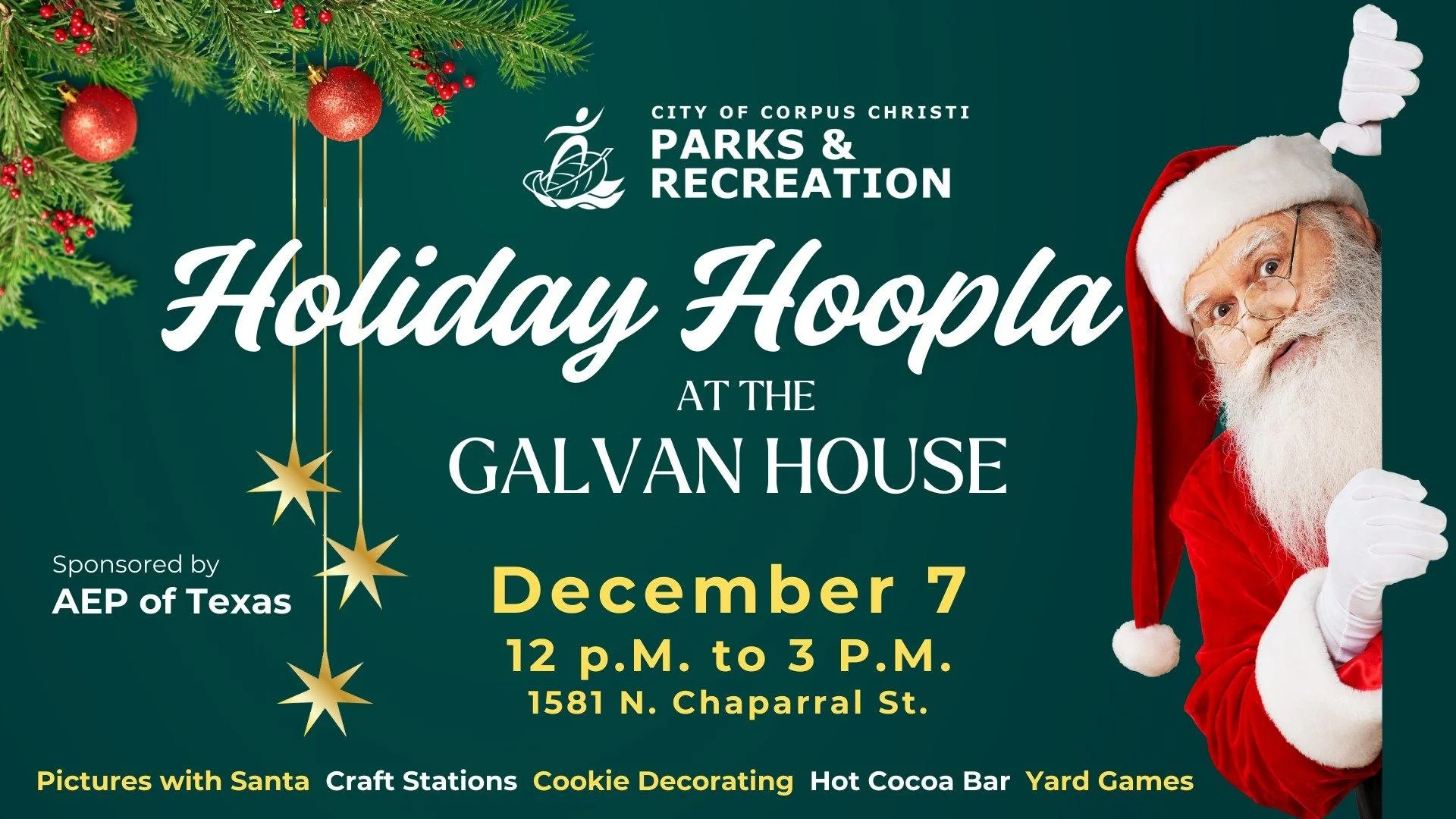 Celebrate the festive season with us at the Holiday Hoopla! Join the fun on Sunday, December 7, from 12:00 p.m. to 3:00 p.m. at the charming and historic Galvan House in Heritage Park, 1581 North Chaparral Street. Admission is FREE. Enjoy a variety of holiday activities, including craft making, cookie decorating, a delightful hot cocoa bar, and exciting yard games. Don’t forget to capture a memorable moment with Santa himself!