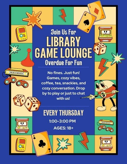Plot twist: the library is the most fun place in town. Join Owen R. Hopkins Library Thursdays 1–3 PM for games, laughs, and chill vibes.