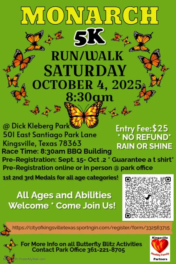 This race will kick off the City of Kingsville’s Butterfly Blitz day activities.