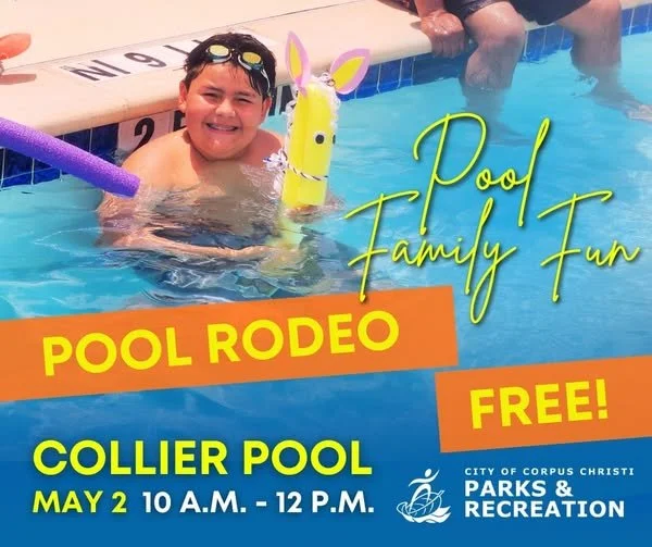 Join Corpus Christi Parks and Recreation for a splash of family fun at their Pool Rodeo on Saturday, May 2, from 10 a.m. to 12 p.m. at Collier Pool, 3801 Harris Drive. In the spirit of BUC DAYS, they are excited to offer a pool bull-riding competition, noodle horse barrel races, a stuffed-animal stock show, and roping pool toys.