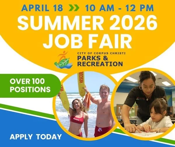 For more information and to apply online, visit our website: www.CorpusChristiTX.gov/Jobs-Parks-Rec