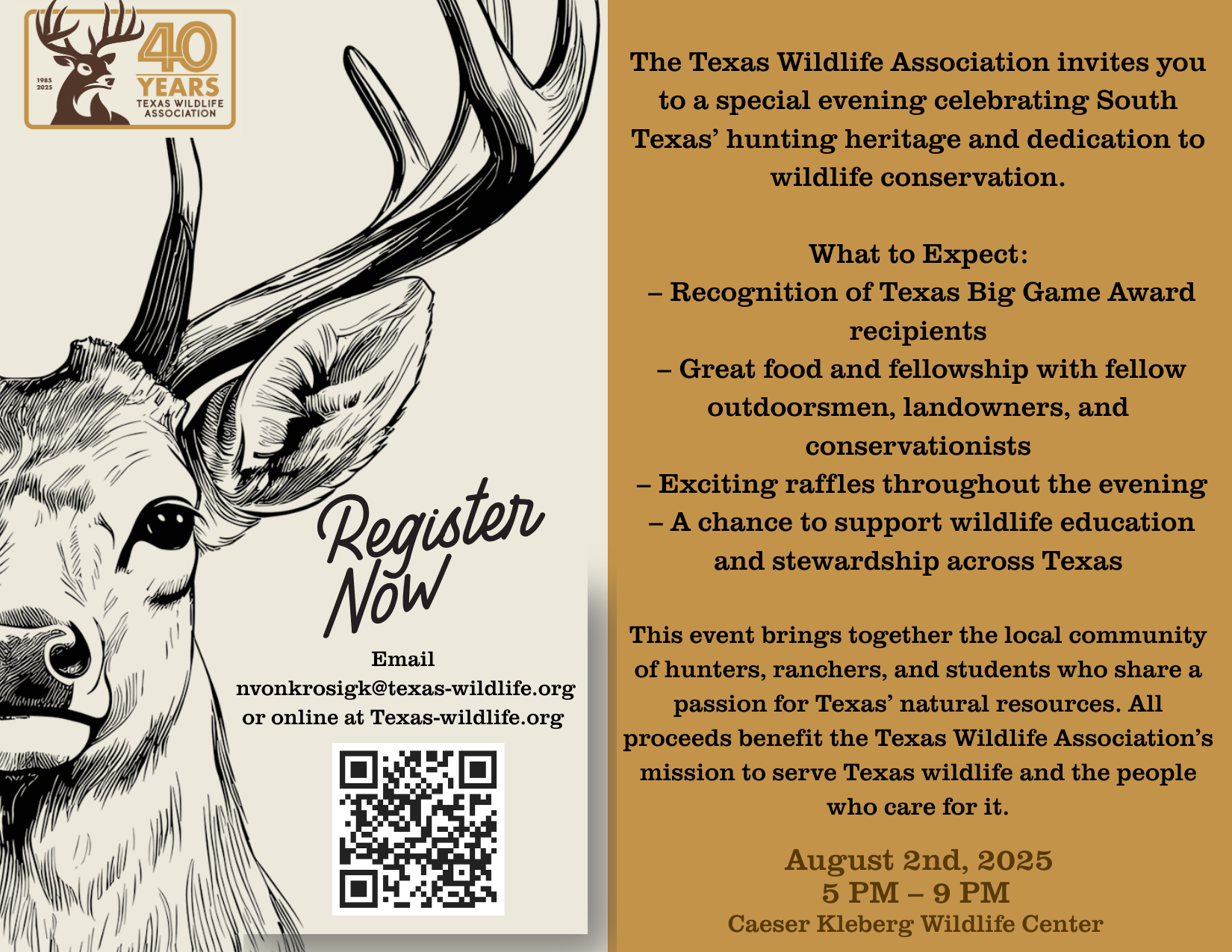The Texas Wildlife Association invites the community to celebrate South Texas’ hunting heritage and dedication to wildlife conservation.