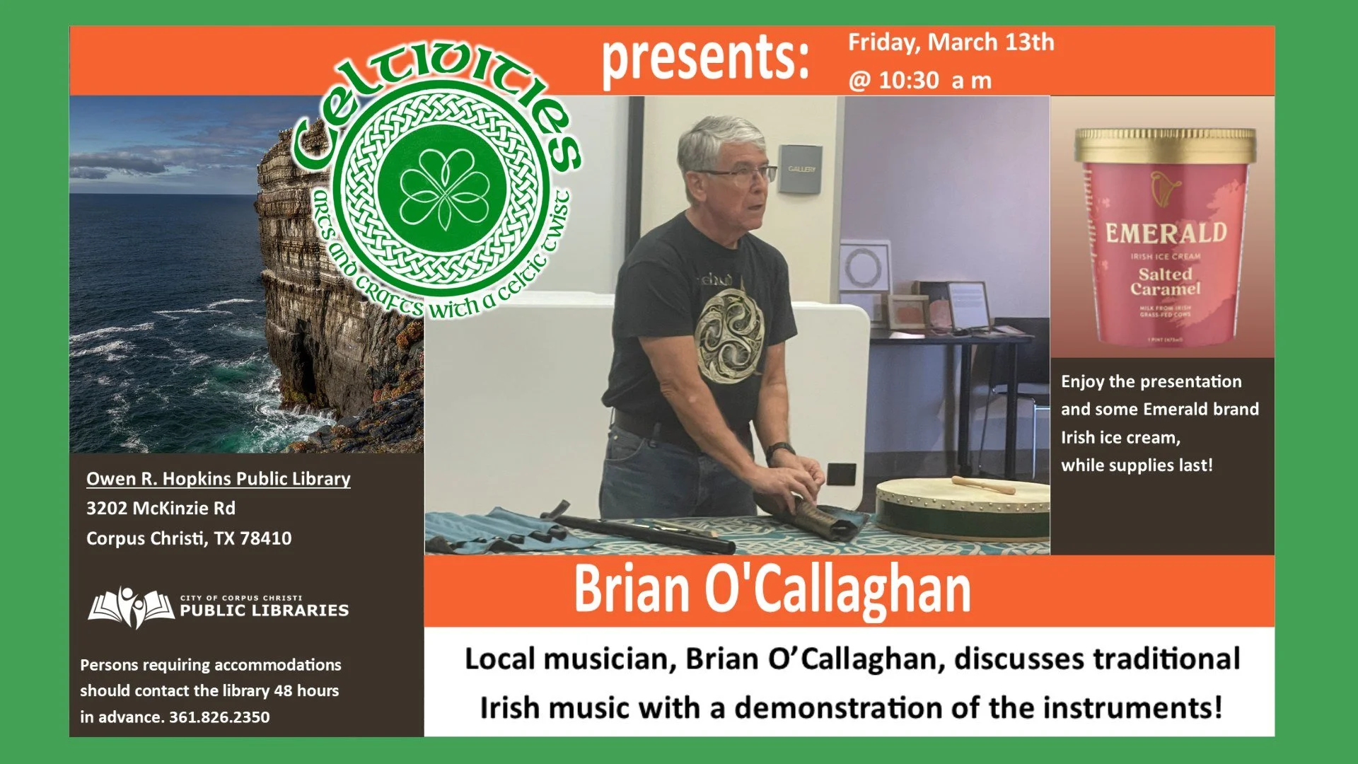 Looking to get into the St. Patrick’s Day spirit? Join Owen R. Hopkins Library for a morning of fun along with some rich history as they explore the soul of Ireland through its music. Local musician Brian O’Callaghan will lead a captivating demonstration of traditional Irish instruments. Whether you’re a lifelong fan of folk music or just curious about how a tin whistle or bodhrán works, this is an event you won't want to miss.