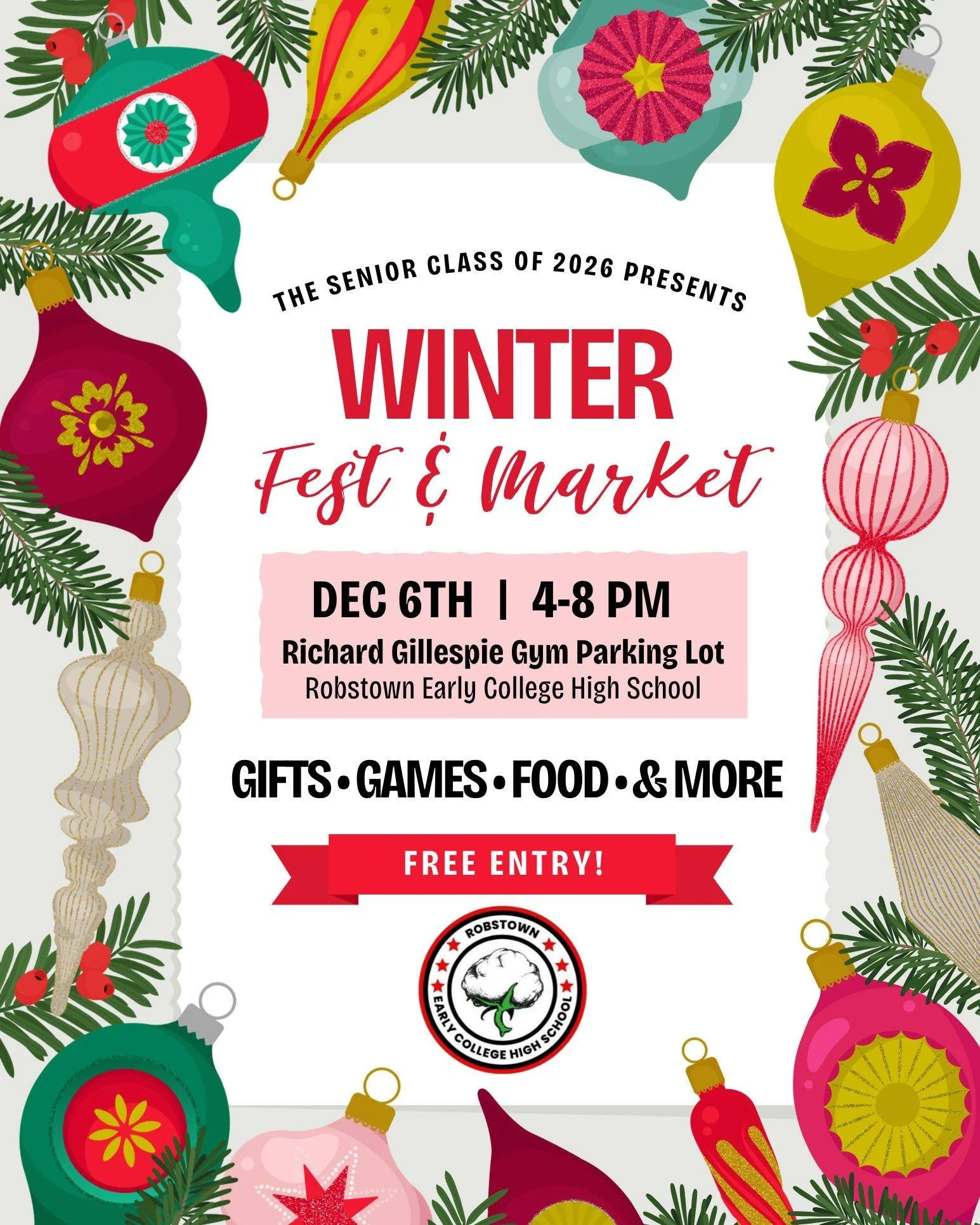 The Robstown High School Senior Class will be hosting a Winter Fest & Market at the RECHS Richard Gillespie Gym parking lot. Come out for gifts, games, food, and more!