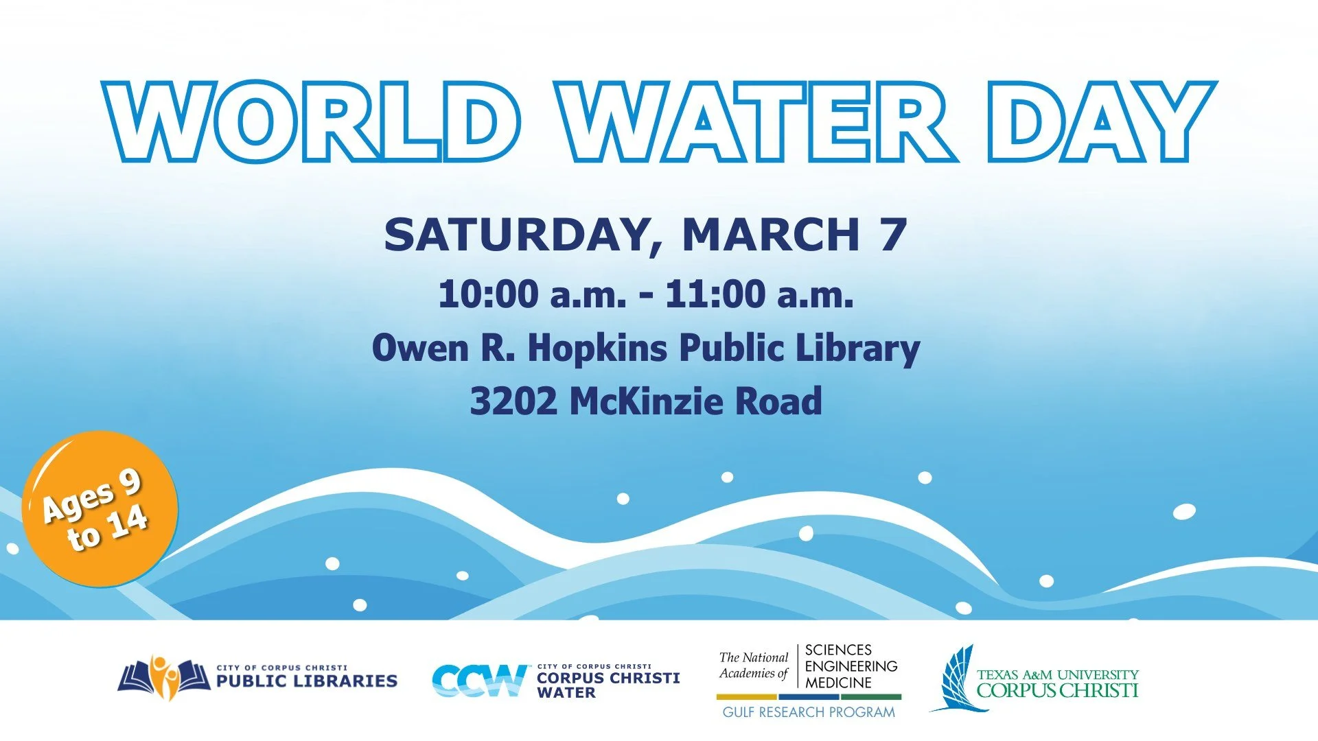 Explore the Science Behind Water! Families and children ages 9 to 14 are invited to a World Water Day event on Saturday, March 7, from 10:00 a.m. to 11:00 a.m. at Owen R. Hopkins Public Library. What’s planned?