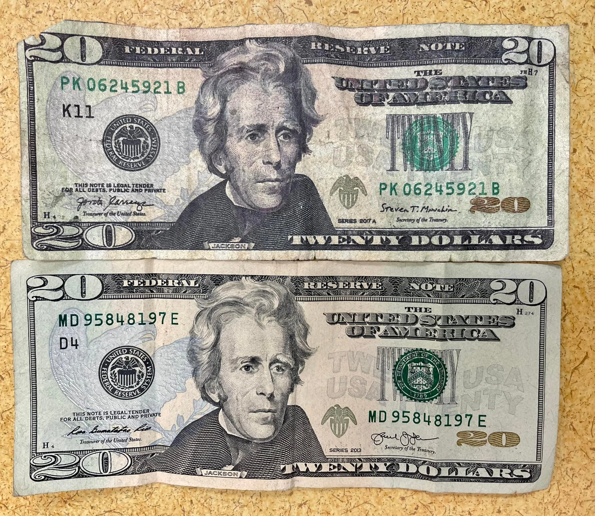Please take a few seconds to look at your bills closely when you receive change or cashing payroll checks.