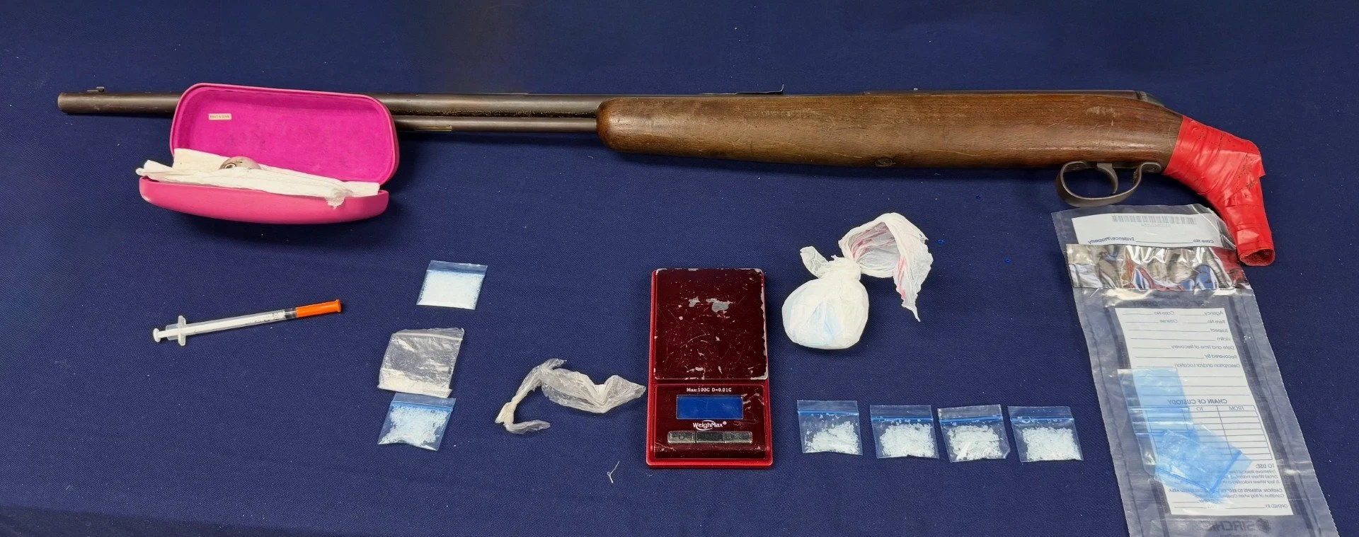 On April 24, 2026, officers executed a search warrant at the apartment and conducted a related traffic stop. As a result of these enforcement actions, authorities seized approximately two ounces of methamphetamine, assorted drug paraphernalia, and a firearm.