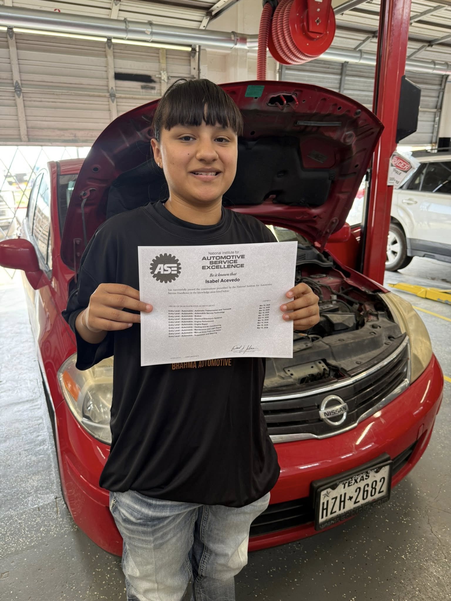 KINGSVILLE, TEXAS (News Release) - Isabel Acevedo, a junior at HM King Early College High School, has reached a historic milestone by passing all 10 examinations administered by the National Institute for Automotive Service Excellence (ASE).