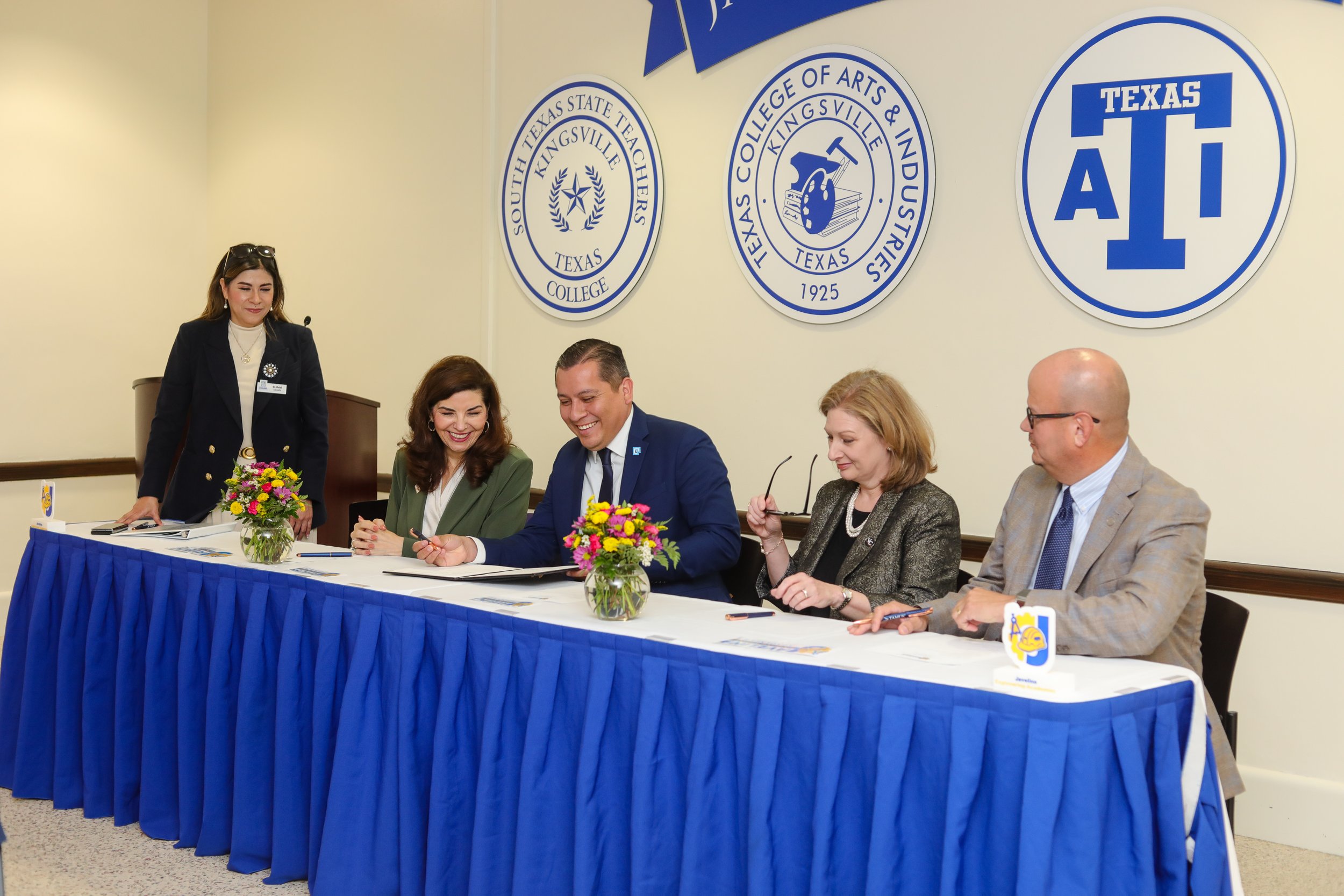 The agreements were signed by TAMUK president Dr. Robert Vela, Coastal Bend College President Dr. Zachary Suarez, Laredo College President Dr. Minita Ramirez and Victoria College President Dr. Jennifer Kent.