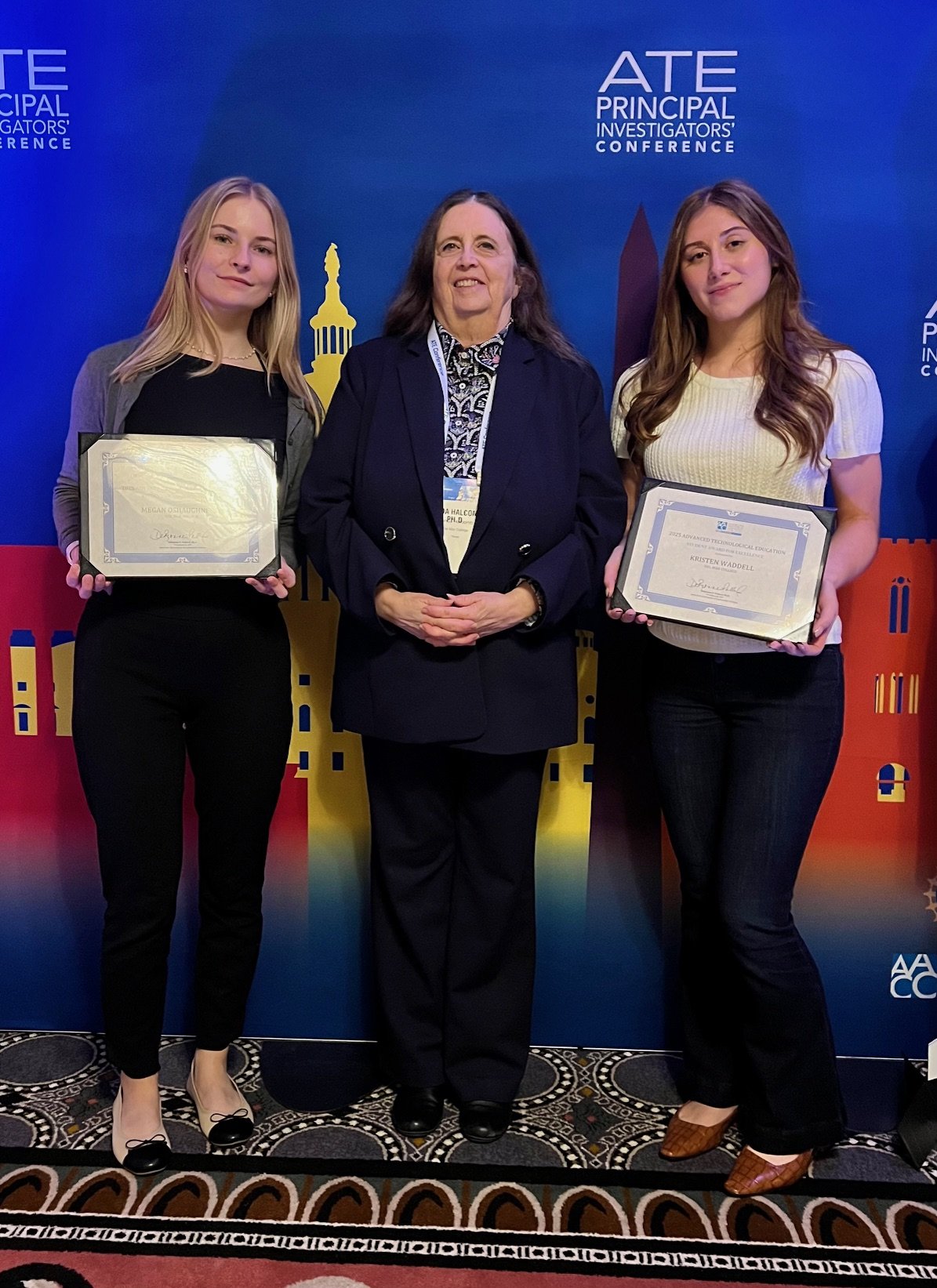 Dr. Jonda Halcomb, Del Mar College Vice President and Chief Academic Officer, was on hand to see students Megan O’Shaughnessy (left) and Kristen Waddell receive an Award for Excellence at the 32nd National Advanced Technical Education (ATE) Principal Investigators’ Conference held in Washington, D.C. Oct. 29-31.